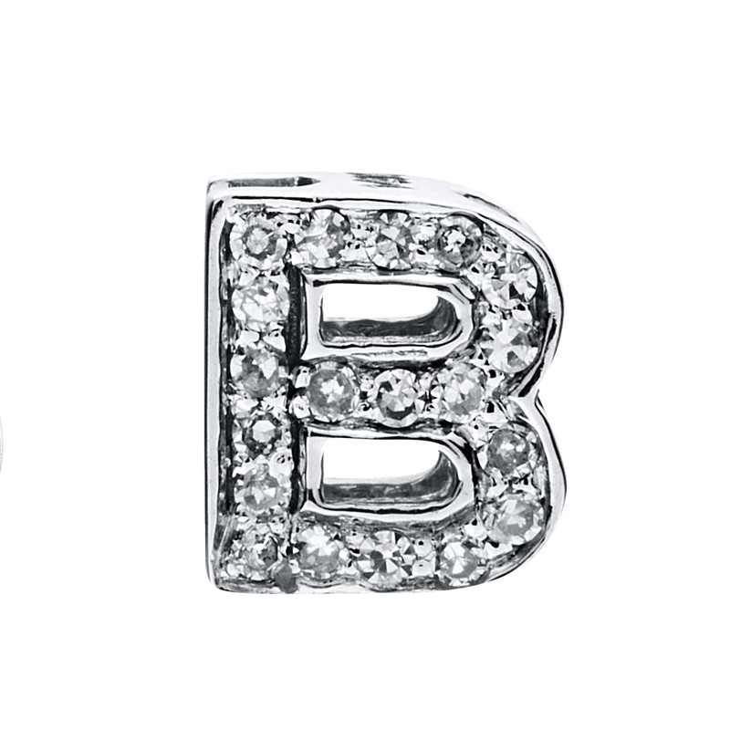 Anhänger 14 kt WG “B”, 19 Diamanten 0,04 ct, W-si, H:5,6 mm, B:4,7 mm