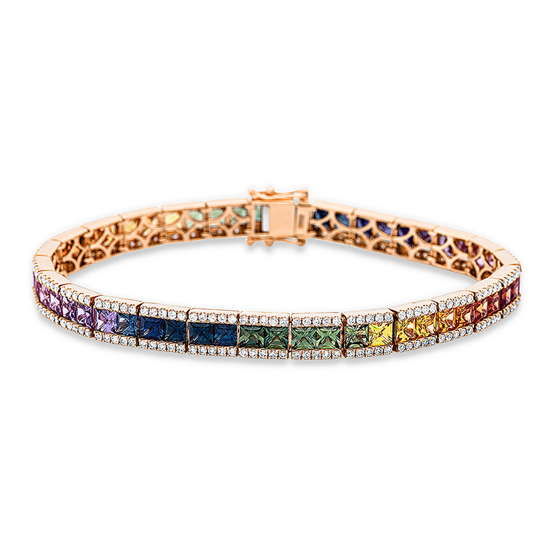 Armband 18 kt RG, 260 Brillanten 1,75 ct, TW-si, 52 Saphire 10,43 ct fancy, B:5,8 mm, L:17,8 cm, S:3,1 mm