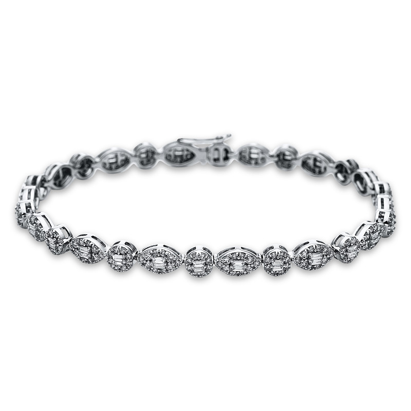 Armband 18 kt WG, 56 Baguette 0,79 ct, TW-si, 252 Brillanten 2,36 ct, TW-si, B:185,0 mm