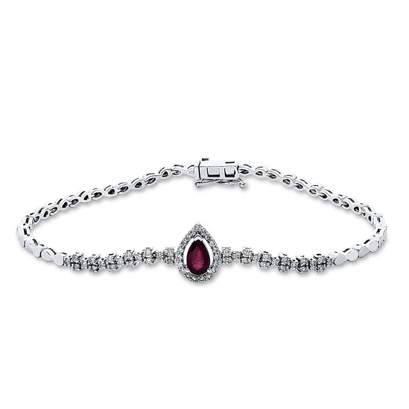 Armband 18 kt WG, 55 Brillanten 0,42 ct, TW-si, 1 Rubin 0,63 ct rot, L:17,5 cm
