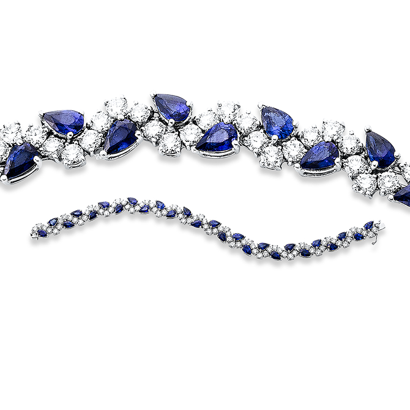 Armband 18 kt WG, 78 Brillanten 7,86 ct, TW-si, 26 Saphire 11,60 ct blau, B:8,6 mm, L:18,5 cm, S:3,9 mm