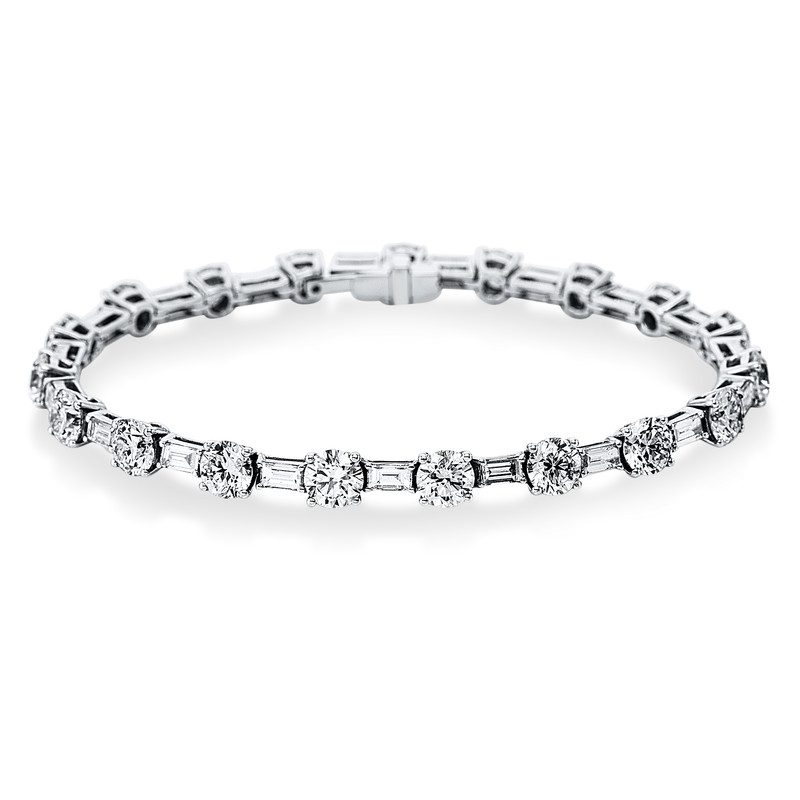 Armband 18 kt WG, GIA: 15pcs, 9 Brillanten 4,12 ct, I-vsi, 6 Brillanten 2,69 ct, I-vvs, 19 Baguette 1,74 ct, 4 Brillanten 1,46 ct, L:40,6 cm