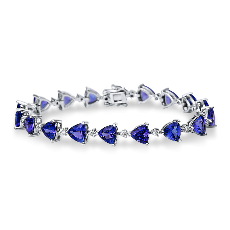Armband 3er-Krappe 14 kt WG, 18 Brillanten 0,71 ct, TW-si, 18 Tansanit 17,72 ct blau, L:18,4 cm