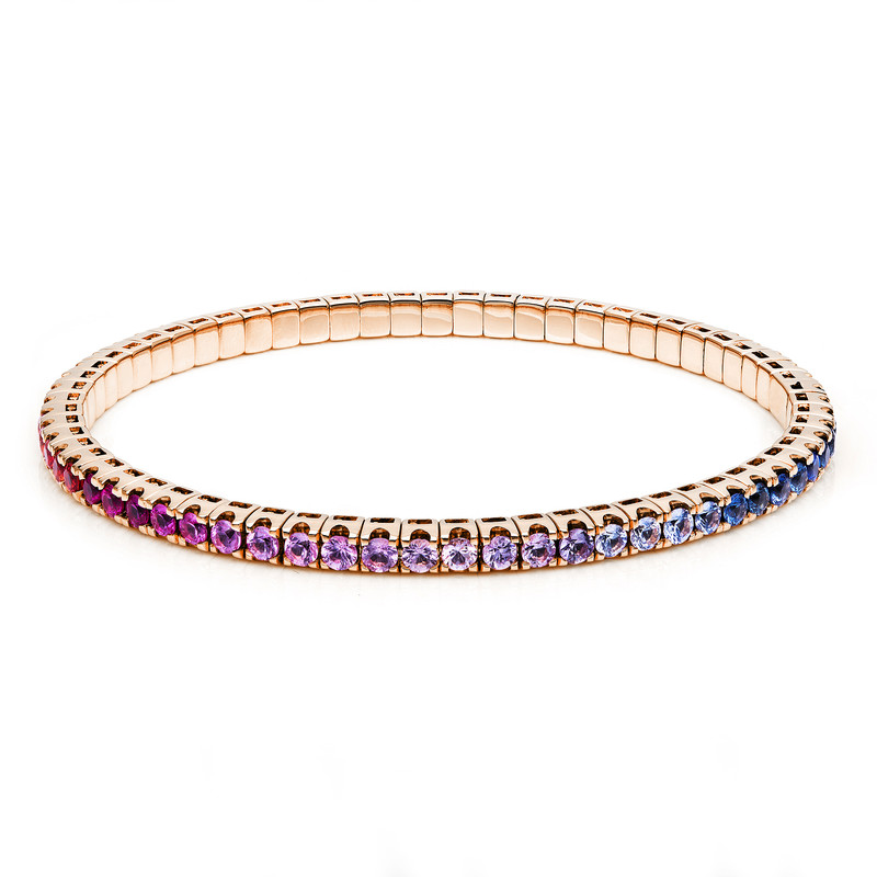 Armband 4er-Krappe 18 kt RG, Flex-Band, variabel, 65 Saphire 6,24 ct multicolor, Ø:56,0 mm