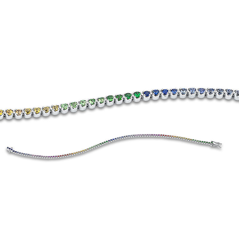 Armband 4er-Krappe 18 kt WG, 92 Saphire 1,36 ct fancy, L:17,8 cm