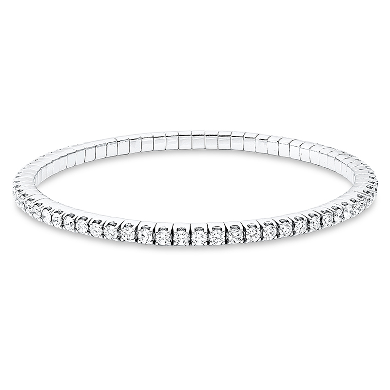 Armband 4er-Krappe 18 kt WG, Flex-Band, variabel, rhodinier, 69 Brillanten 2,81 ct, TW-si, B:3,3 mm, L:16,5 cm