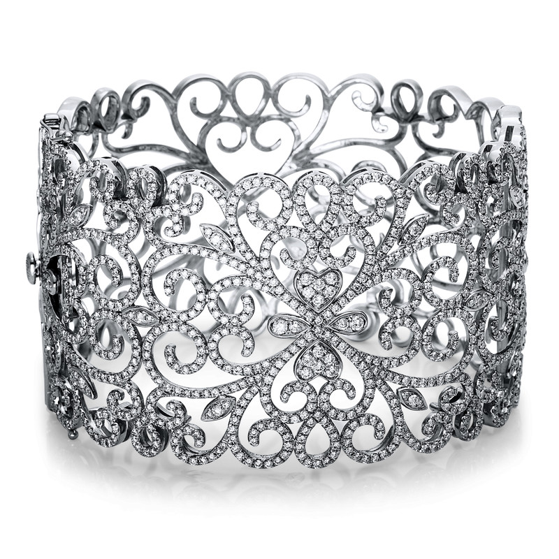 Armreif 18 kt WG, 1000 Brillanten 7,19 ct, TW-si, H:56,5 mm, B:67,2 mm
