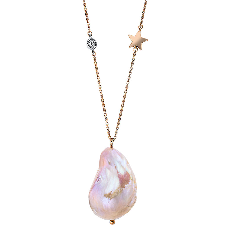 Collier 14 kt RG+WG, 2 Brillanten 0,04 ct, TW-si, 1 ZP, barock pink, L:42,0 cm