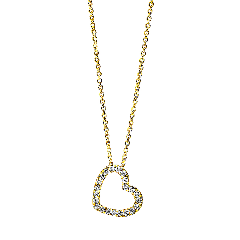 Collier 18 kt GG “Herz”, mit ZÖ 40 cm, 22 Brillanten 0,18 ct, TW-si, H:10,1 mm, B:11,5 mm, L:45,0 cm, S:2,2 mm