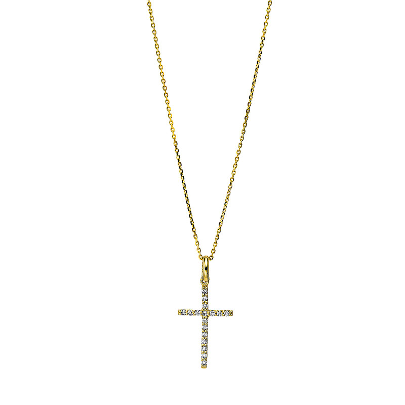 Collier 18 kt GG “Kreuz”, mit Öse, 17 Brillanten 0,08 ct, TW-si, L:42,0 cm, S:1,1 mm