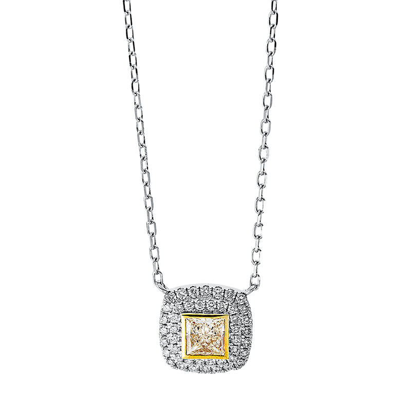 Collier 18 kt GG+WG, 1 Princ. 0,41 ct, gelb-vsi, 44 Brillanten 0,22 ct, TW-si, L:45,7 cm