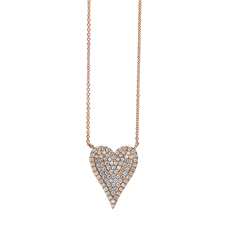 Collier 18 kt RG “Herz”, mit ZÖ 40 cm and 43cm, 89 Brillanten 0,51 ct, TW-si, L:45,7 cm