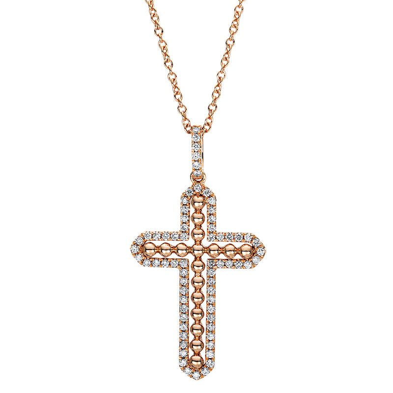 Collier 18 kt RG “Kreuz”, mit Öse, 68 Brillanten 0,24 ct, TW-si, L:45,7 cm