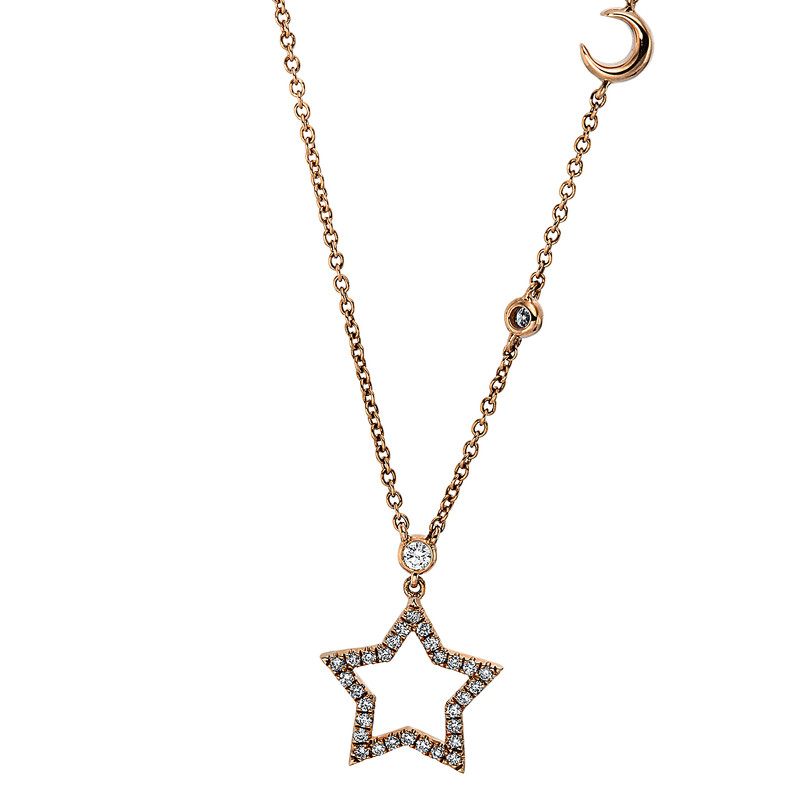 Collier 18 kt RG “Stern”, mit ZÖ 40 cm, 37 Brillanten 0,20 ct, TW-si, 4 Brillanten 0,14 ct, TW-si, L:45,0 cm