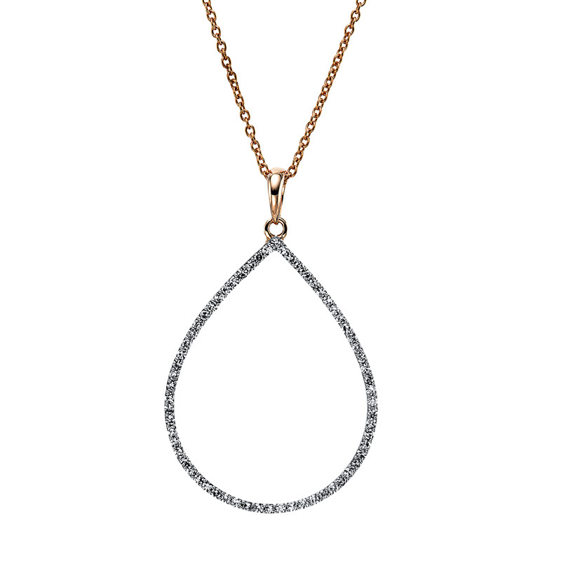 Collier 18 kt RG “Tropfen”, mit Öse, 64 Brillanten 0,25 ct, TW-si, L:45,7 cm