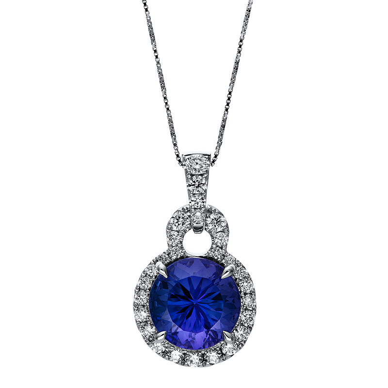 Collier 18 kt WG, 27 Brillanten 0,55 ct, TW-si, 1 Tansanit 5,93 ct blau, H:24,2 mm, B:13,9 mm, L:42,0 cm
