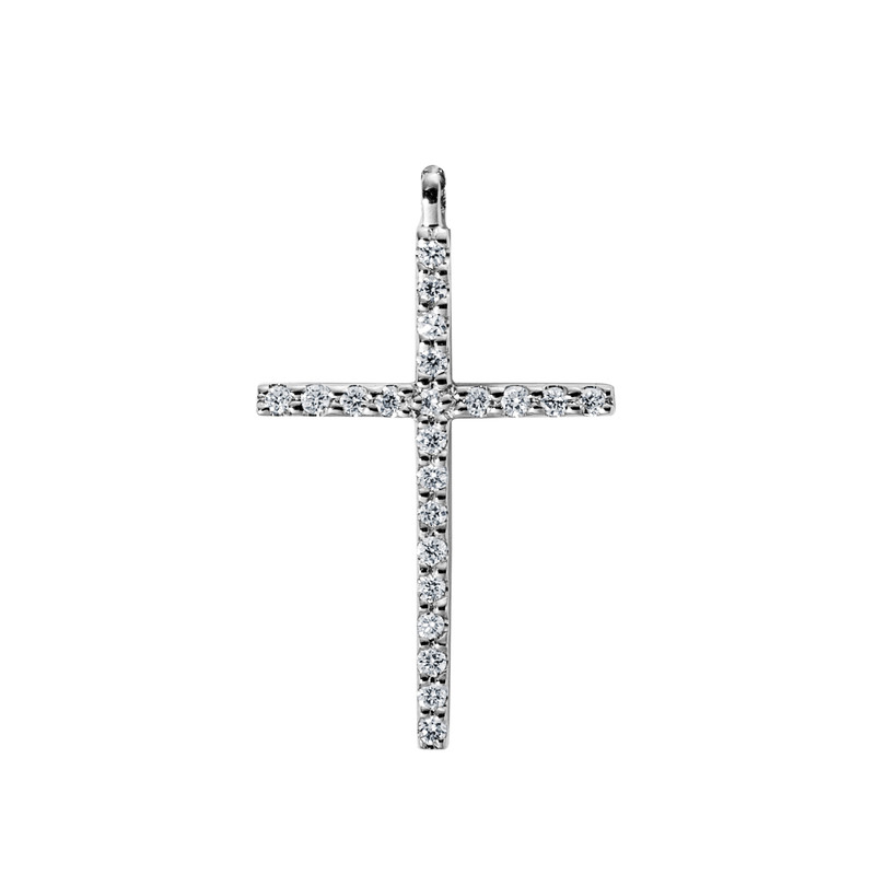 Collier 18 kt WG “Kreuz”, mit Öse, 22 Brillanten 0,05 ct, TW-si, H:16,6 mm, B:10,2 mm, L:42,0 cm