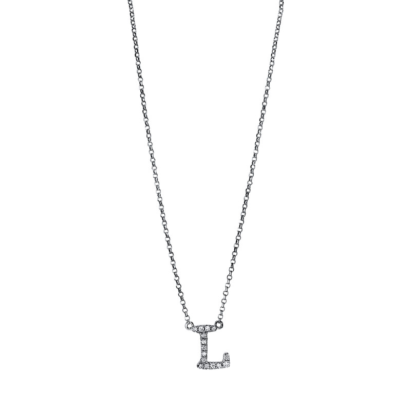 Collier 18 kt WG “L”, mit ZÖ 38 cm & 40.6 cm, 15 Brillanten 0,06 ct, TW-si, H:8,8 mm, B:6,2 mm, L:43,2 cm