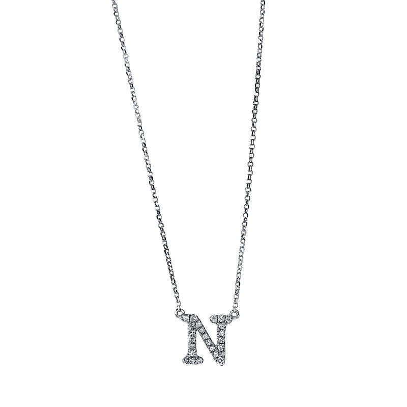 Collier 18 kt WG “N”, mit ZÖ 38 cm & 40.6 cm, 25 Brillanten 0,12 ct, TW-si, L:43,2 cm