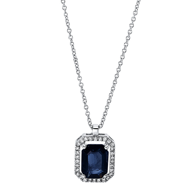 Collier 4er-Krappe 14 kt WG, 30 Brillanten 0,12 ct, TW-si, 1 Saphir 1,50 ct blau, L:45,0 cm