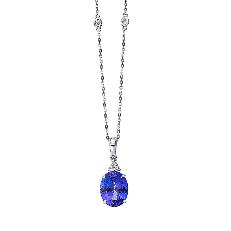 Collier 4er-Krappe 18 kt WG, mit Öse, 5 Brillanten 0,13 ct, TW-si, 1 Tansanit 4,39 ct blau, L:45,7 cm
