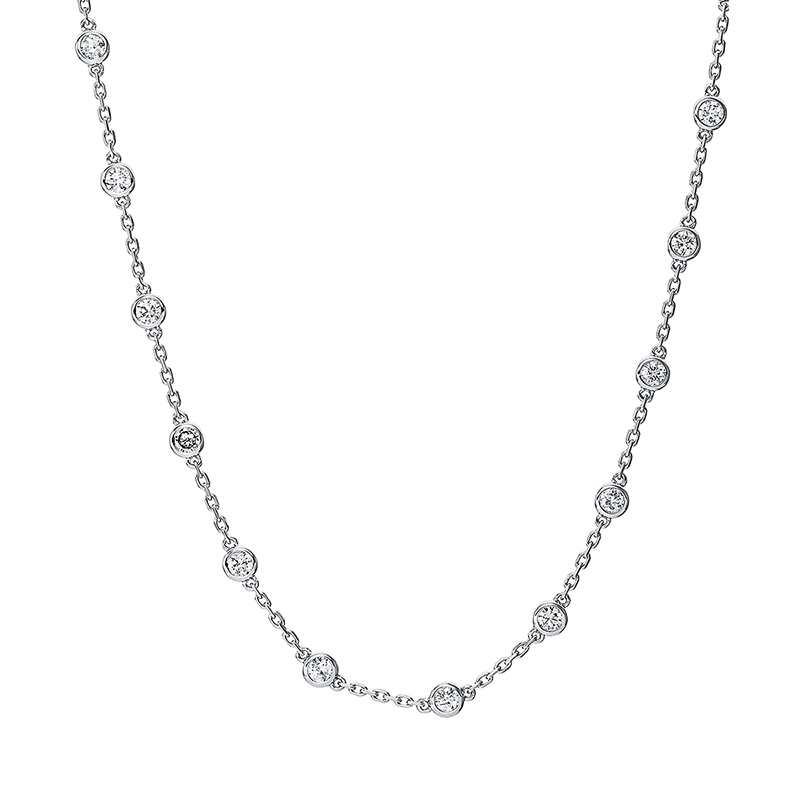 Collier Zarge 18 kt WG, 23 Brillanten 3,11 ct, TW-si, H:4,5 mm, B:4,5 mm, L:49,5 cm, S:2,2 mm