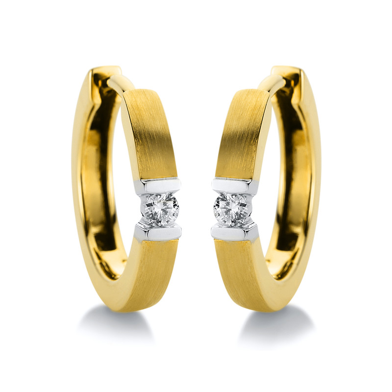 Creolen 14 kt GG+WG, mattiert + poliert, 2 Brill. 0,06 ct, TW-si, S:2,3 mm, Ø:13,1 mm