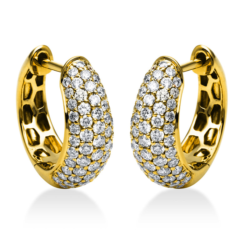 Creolen 18 kt GG, 118 Brillanten 1,18 ct, TW-si, H:14,0 mm, B:15,0 mm, S:5,0 mm