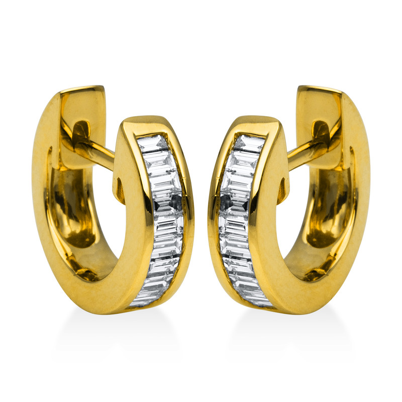 Creolen 18 kt GG, 22 Baguette 0,40 ct, TW-vsi