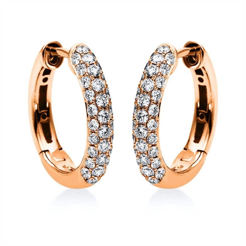Creolen 18 kt RG, 62 Brillanten 0,76 ct, TW-si, H:16,5 mm, B:17,0 mm, S:3,0 mm
