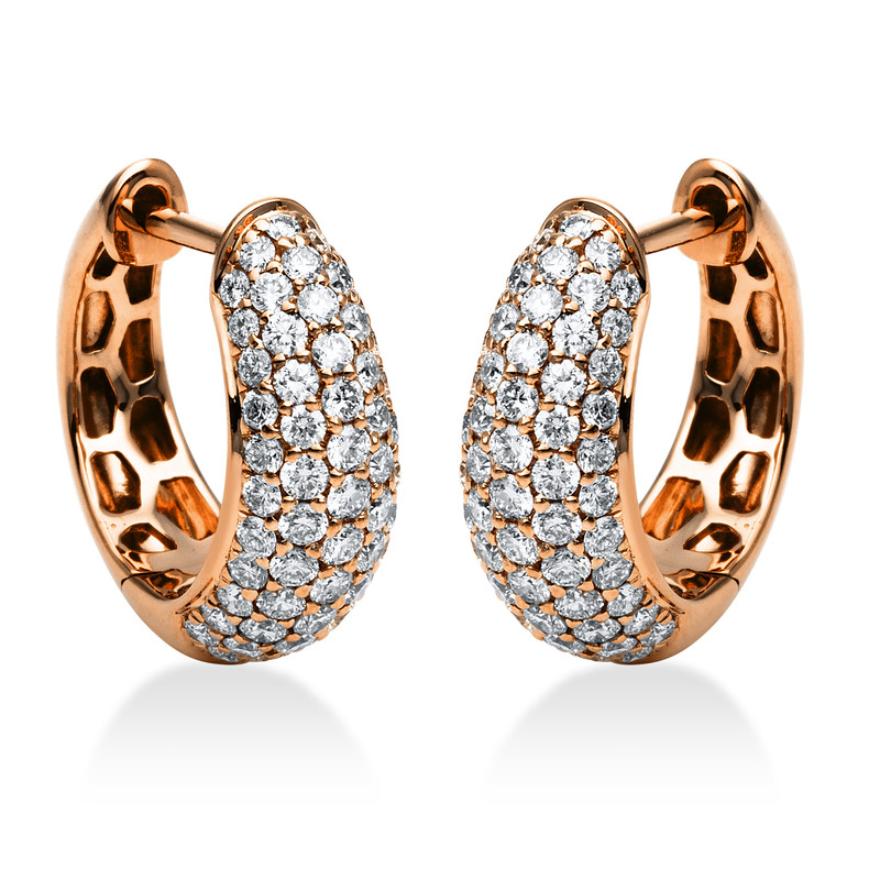 Creolen 18 kt RG, 118 Brillanten 1,18 ct, TW-si, H:14,0 mm, B:15,0 mm, S:5,0 mm