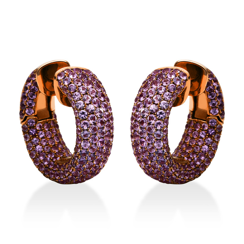 Creolen 18 kt RG, 478 Saphire 13,98 ct pink