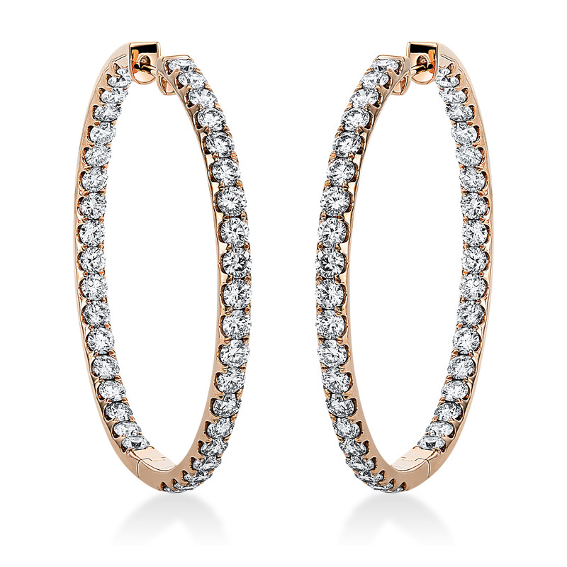 Creolen 18 kt RG, 76 Brillanten 6,97 ct, TW-si, H:44,1 mm, B:45,5 mm, S:3,2 mm