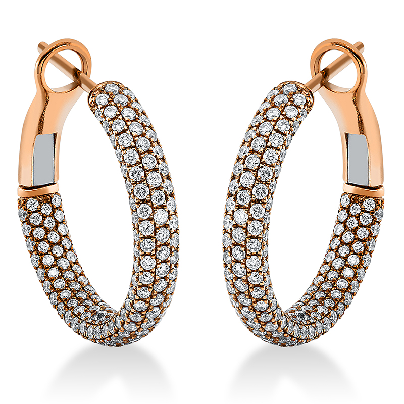 Creolen 18 kt RG, 506 Brillanten 1,74 ct, TW-si, H:19,0 mm, B:19,4 mm, S:3,1 mm