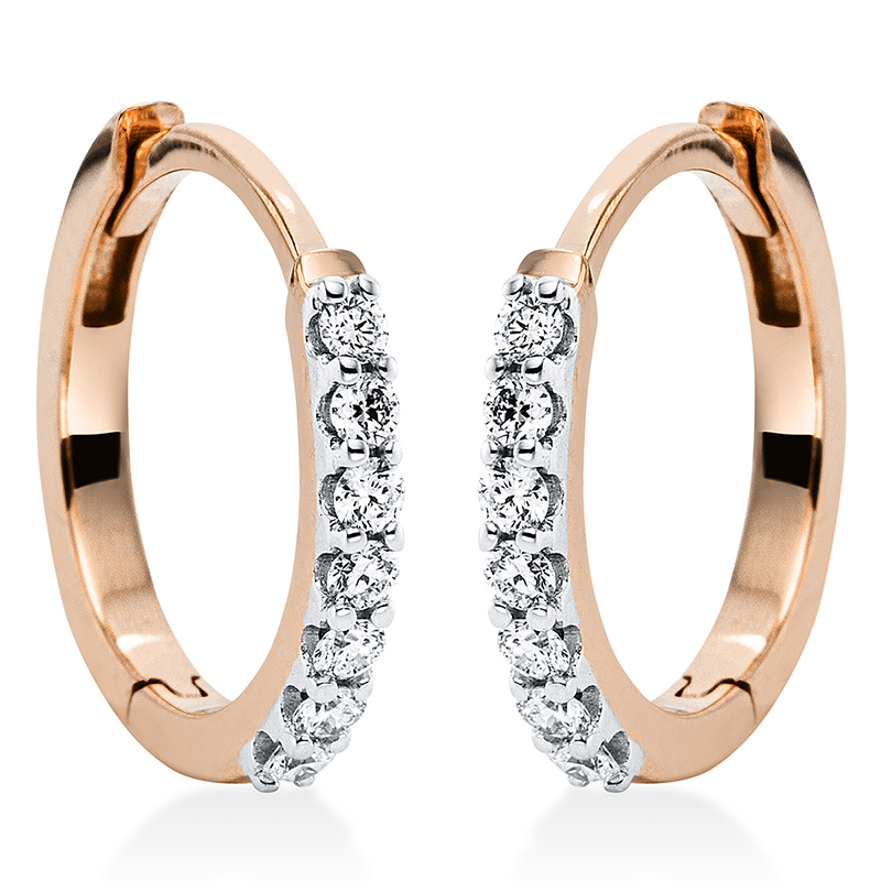 Creolen 18 kt RG+WG, 14 Brillanten 0,15 ct, TW-si, H:11,9 mm, B:12,7 mm, S:1,5 mm