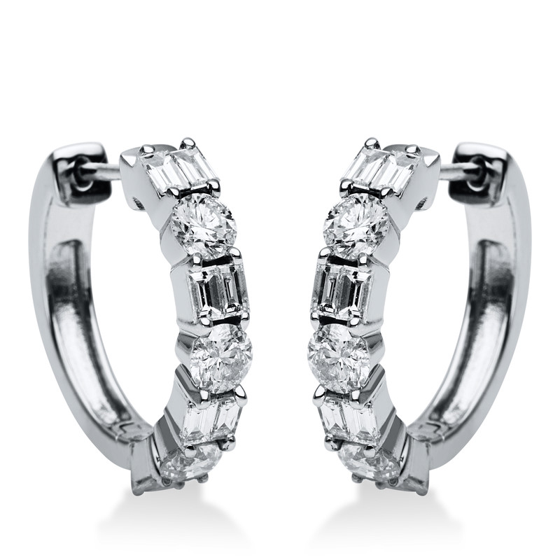 Creolen 18 kt WG, 6 Brillanten 0,86 ct, TW-si, 16 Baguette 0,62 ct, TW-si