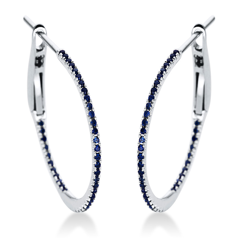 Creolen 18 kt WG, 86 Saphire 1,81 ct blau