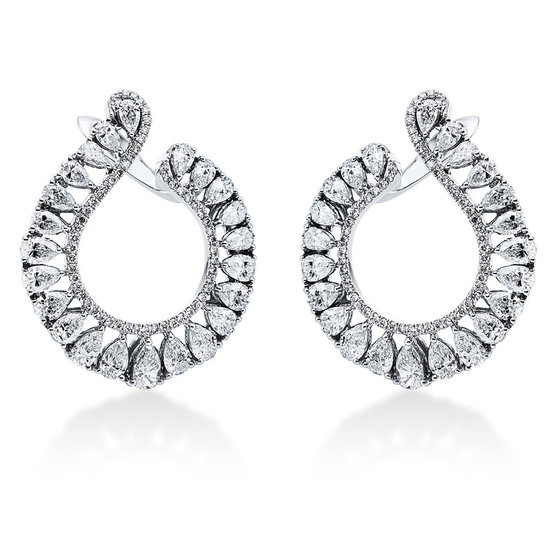 Creolen 18 kt WG, 46 Tropfen 4,93 ct, TW-vsi, 107 Brillanten 0,45 ct, TW-vsi
