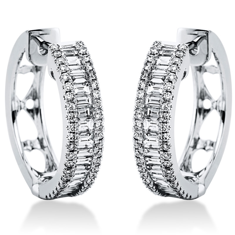 Creolen 18 kt WG, 34 Baguette 0,65 ct, TW-si, 84 Brillanten 0,29 ct, TW-si, B:18,1 mm, S:4,2 mm