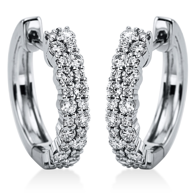 Creolen 18 kt WG, 24 Brillanten 0,81 ct, TW-si, 24 Brillanten 0,19 ct, TW-si, H:16,6 mm, B:17,8 mm, S:3,6 mm