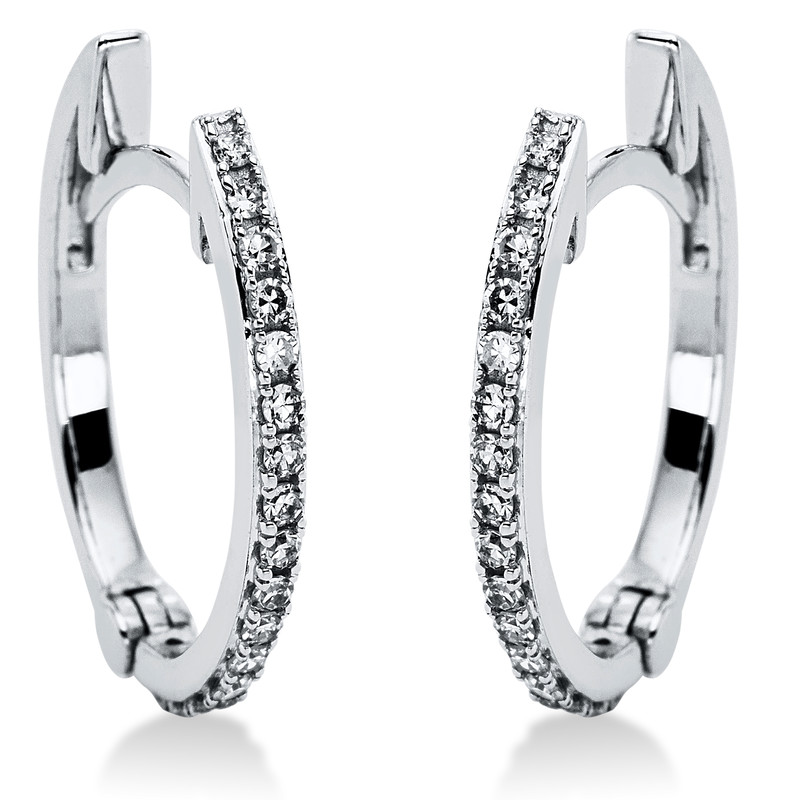 Creolen 18 kt WG, 32 Diamanten 0,19 ct, TW-si, H:16,7 mm, B:13,0 mm, S:1,5 mm