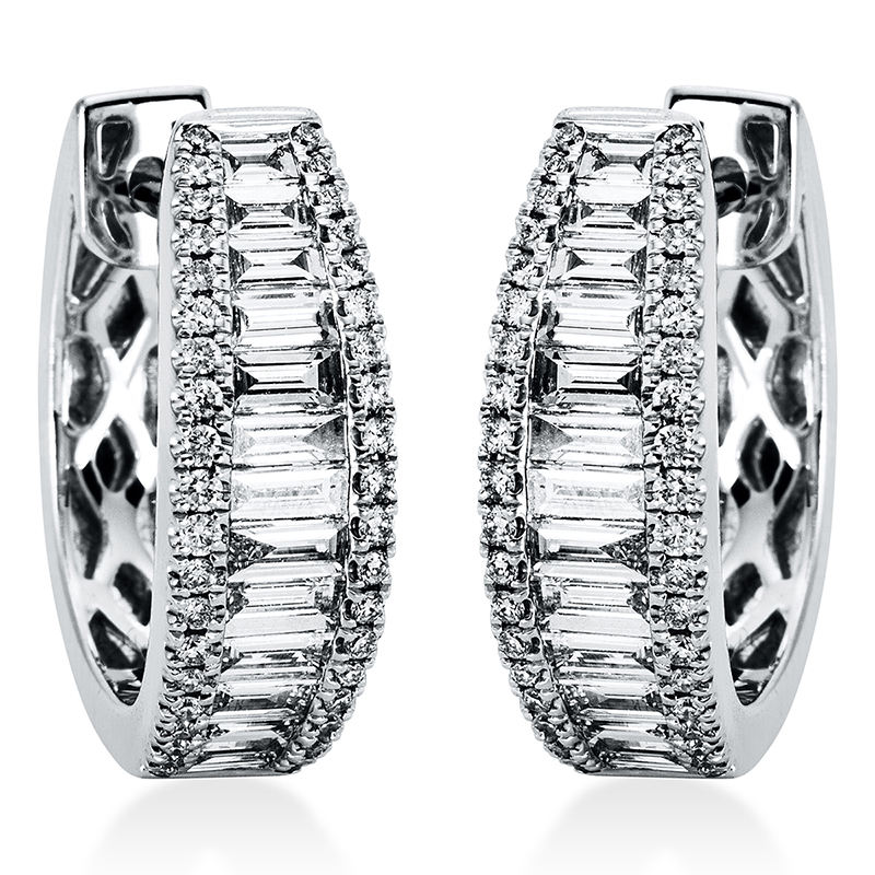 Creolen 18 kt WG, 26 Baguette 0,91 ct, TW-vsi/si, 80 Brillanten 0,25 ct, TW-vsi/si