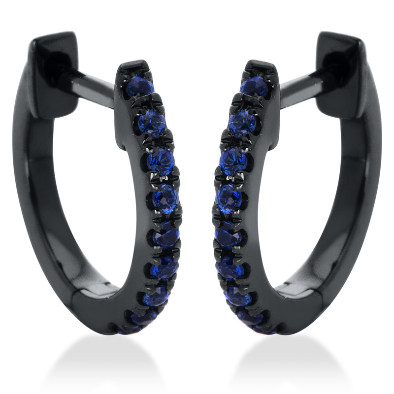 Creolen 18 kt WG, schwarz rhodiniert, 18 Saphire 0,08 ct blau