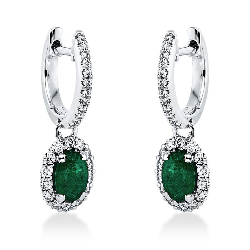 Creolen 4er-Krappe 18 kt WG, 52 Brillanten 0,36 ct, TW-si, 2 Smaragde 0,82 ct grün, H:20,0 mm, B:6,8 mm