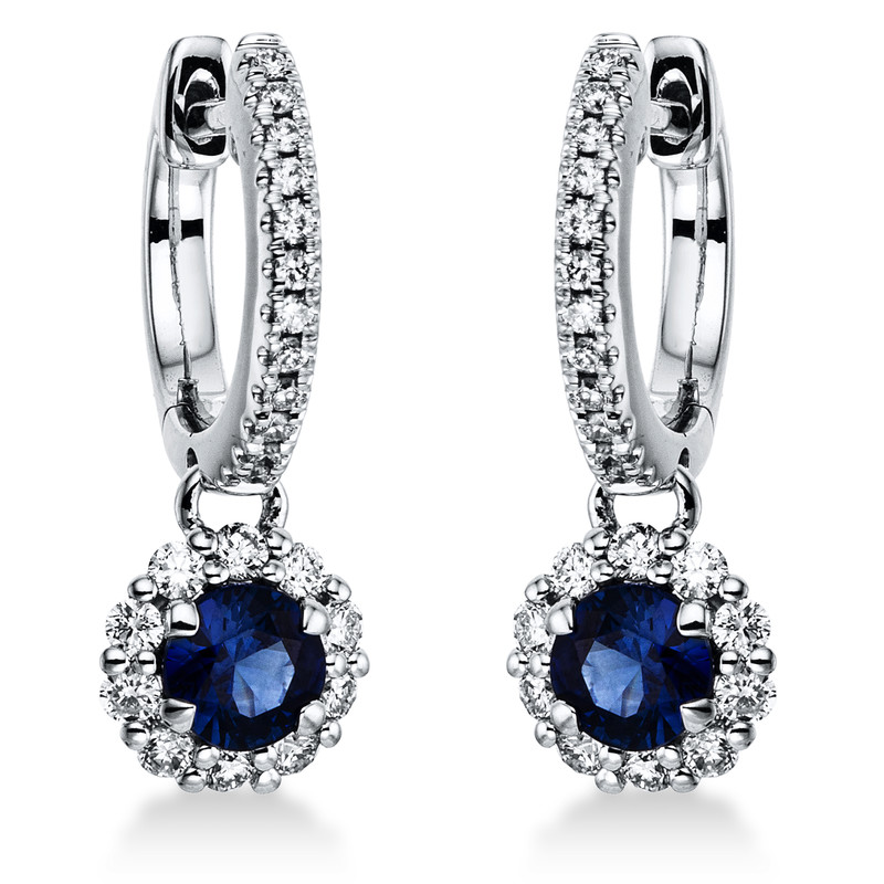 Creolen 4er-Krappe 18 kt WG, 44 Brillanten 0,32 ct, TW-si, 2 Saphire 0,56 ct blau