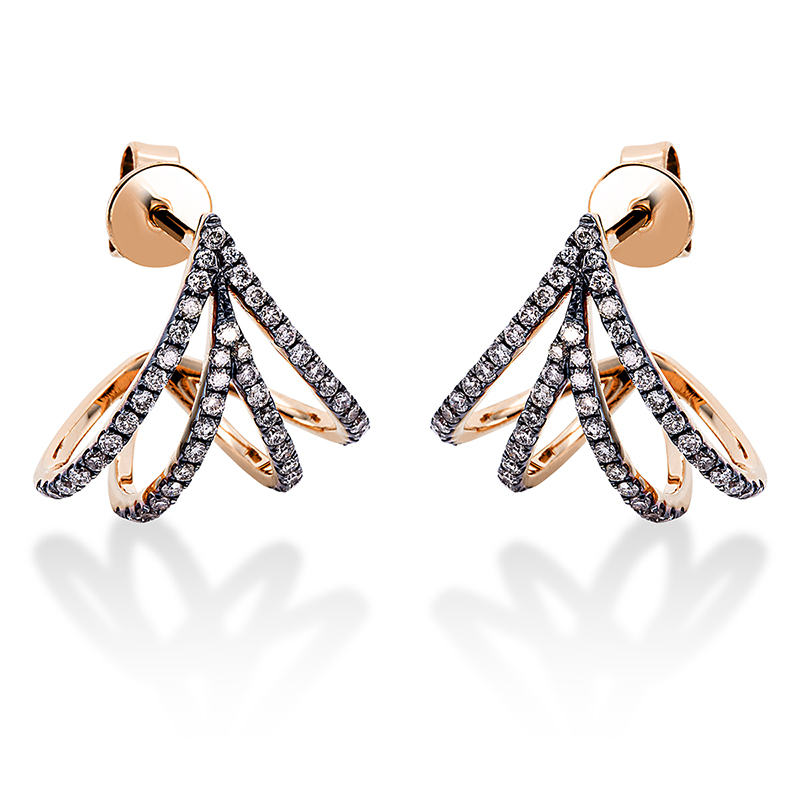 Ohrschmuck 18 kt RG, 104 Brillanten 0,41 ct, braun