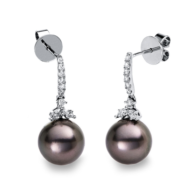 Ohrschmuck 18 kt WG, 4 Navette 0,17 ct, W-si, 14 Brillanten 0,20 ct, W-si, 2 TA dunkel 10 mm
