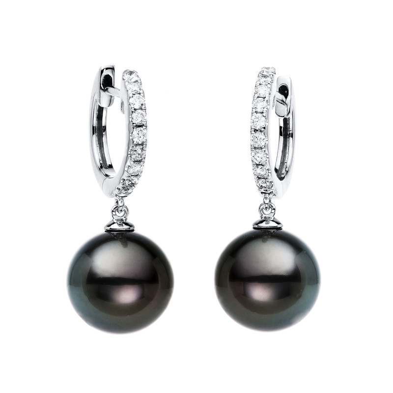 Ohrschmuck 18 kt WG, 18 Brillanten 0,23 ct, W-si, 2 TA dunkel 10 mm