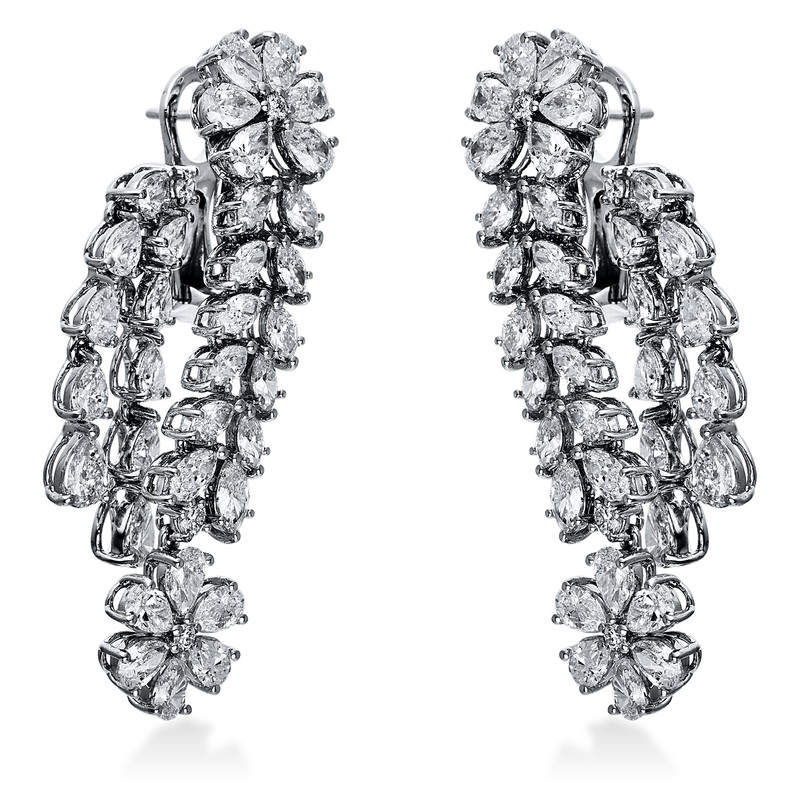 Ohrschmuck 18 kt WG, 44 Tropfen 6,16 ct, TW-vsi/si, 24 Navette 2,25 ct, TW-vsi/si, 8 Brillanten 0,29 ct, TW-vsi/si