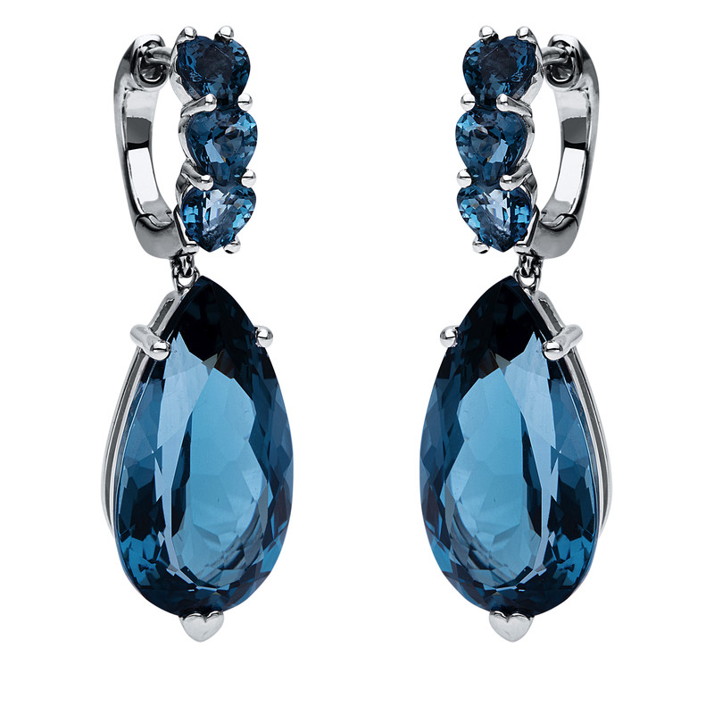 Ohrschmuck 18 kt WG, 6 Topase 1,60 ct Lond. blue, 2 Topase 15,80 ct Lond. blue